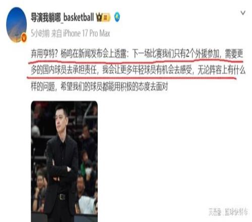 辽篮被双杀后彻底摆烂杨鸣赛后的话让人绝望:第5外援要被裁了